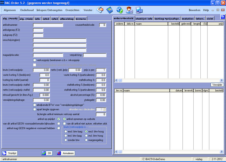 U ziet nu het volgende scherm waarop artikelen kunnen worden ingevoerd of aangepast: