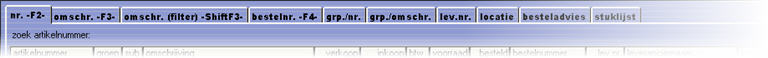 U kunt op elk willekeurig moment de eerste paar cijfers of letters van bijvoorbeeld een artikelnummer of artikelomschrijving intypen die u wilt selecteren (u hoeft dus niet eerst achter het veld zoek artikelnummer: met de muis te klikken), de blauwe balk springt daar dan gelijk naar toe. Heeft u een fout gemaakt bij het intypen, dan kunt u deze verwijderen met de Backspace-toets.