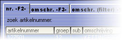 U kunt door de eerste paar letters of cijfers van een omschrijving in te typen bijvoorbeeld een artikel selecteren op artikelnummer, artikelomschrijving, artikelgroep of op bijvoorbeeld bestelnummer etc.