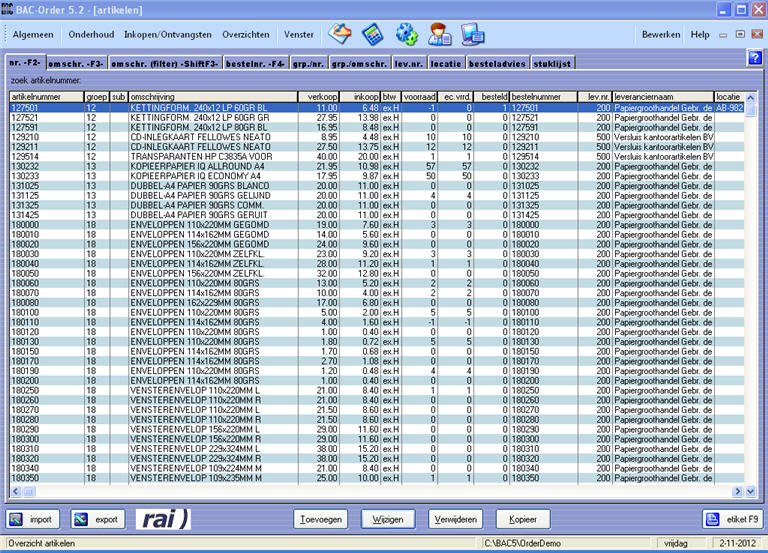 LET OP: Het Toevoegen of invoeren, wijzigen en/of verwijderen van andere gegevens zoals debiteuren, crediteuren, orders en orderregels gaat op dezelfde manier als hierboven beschreven is voor de artikelen!